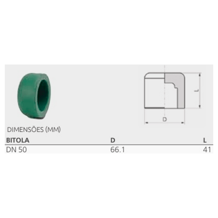 Cap PPR Verde Termofusão Água Quente Fria 50mm