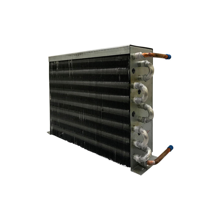 Os condensadores fabricados pela Elgin funcionam por resfriamento de ar forçado e são montados com tubos de cobre e aletas de alumínio de alta qualidade e robustez, garantindo alta eficiência em rejeição de calor.