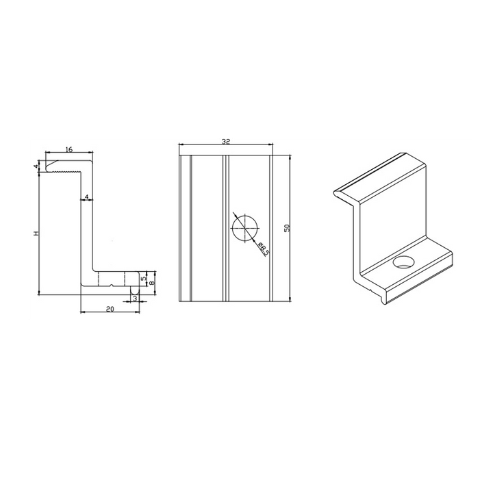 Presilha Grampo Fixador (End Clamp) Final (Lateral) com Porca e Parafuso para Perfil de Alumínio Fixação de Painel Solar Fotovoltaico