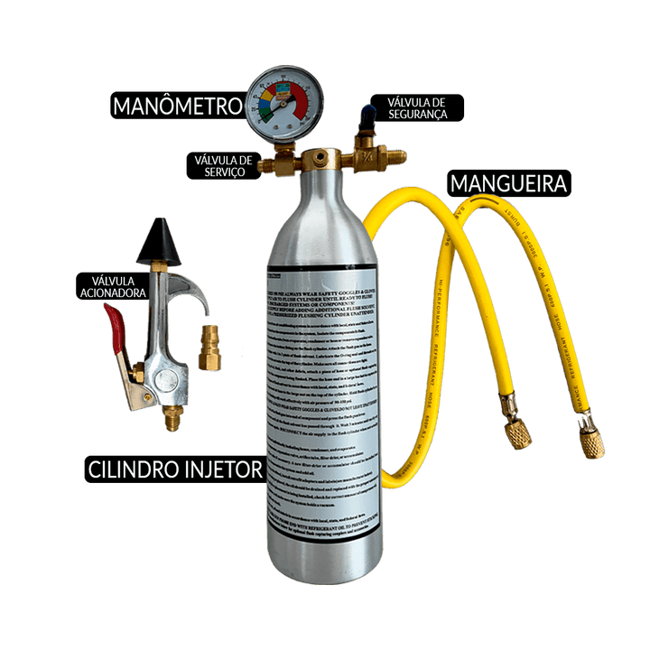 - kit composto por garrafa injetora vazia, manômetro, mangueira e válvula acionadora.