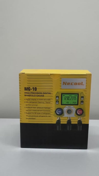 - Tela LCD de alta definição com luz de fundo e display amigável para facilitar a leitura em ambientes escuros com exibição precisa e clara dos 88 tipos de gás refrigerante;