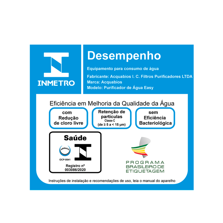 - ECONOMIA: o Purificador de Água Easy significa muito mais economia - representa aproximadamente 135 bombonas de água de 20 litros;