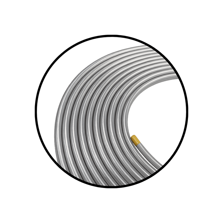 - Processo de extrusão, trefilação e tratamento térmico garante um alto padrão de qualidade e uma microestrutura refinada, similar a dos tubos de cobre;