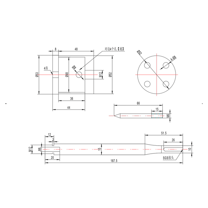 - acompanha haste de encaixe hexagonal com 188mm de comprimento e pino guia de 66mm de comprimento para marcação de furos;