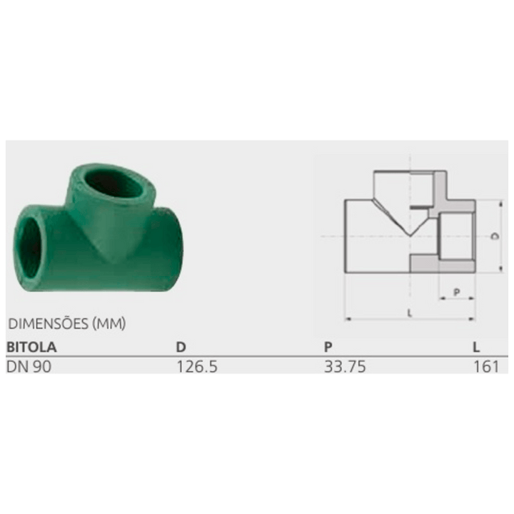 Tê Normal Fêmea PPR Verde Termofusão Água Quente Fria 90mm
