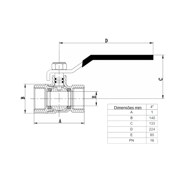 Registro Válvula Esfera Alavanca Latão Rosca Fêmea 4" BSP