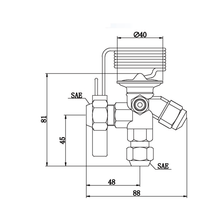 Válvula de Expansão Termostática Equalização Externa 3/8" e 1/2" R22/R407C Rosca SAE (TEX2)
