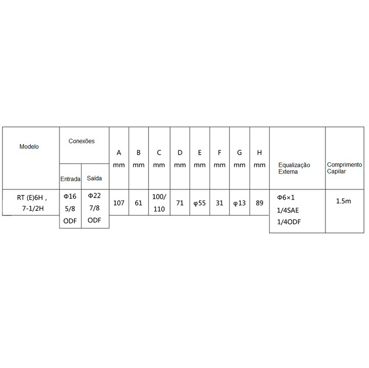 - as especificações da válvula são baseadas na temperatura de evaporação de 4,4°C, temperatura de condensação de 40°C e temperatura do gás refrigerante antes de válvula de 38°C.